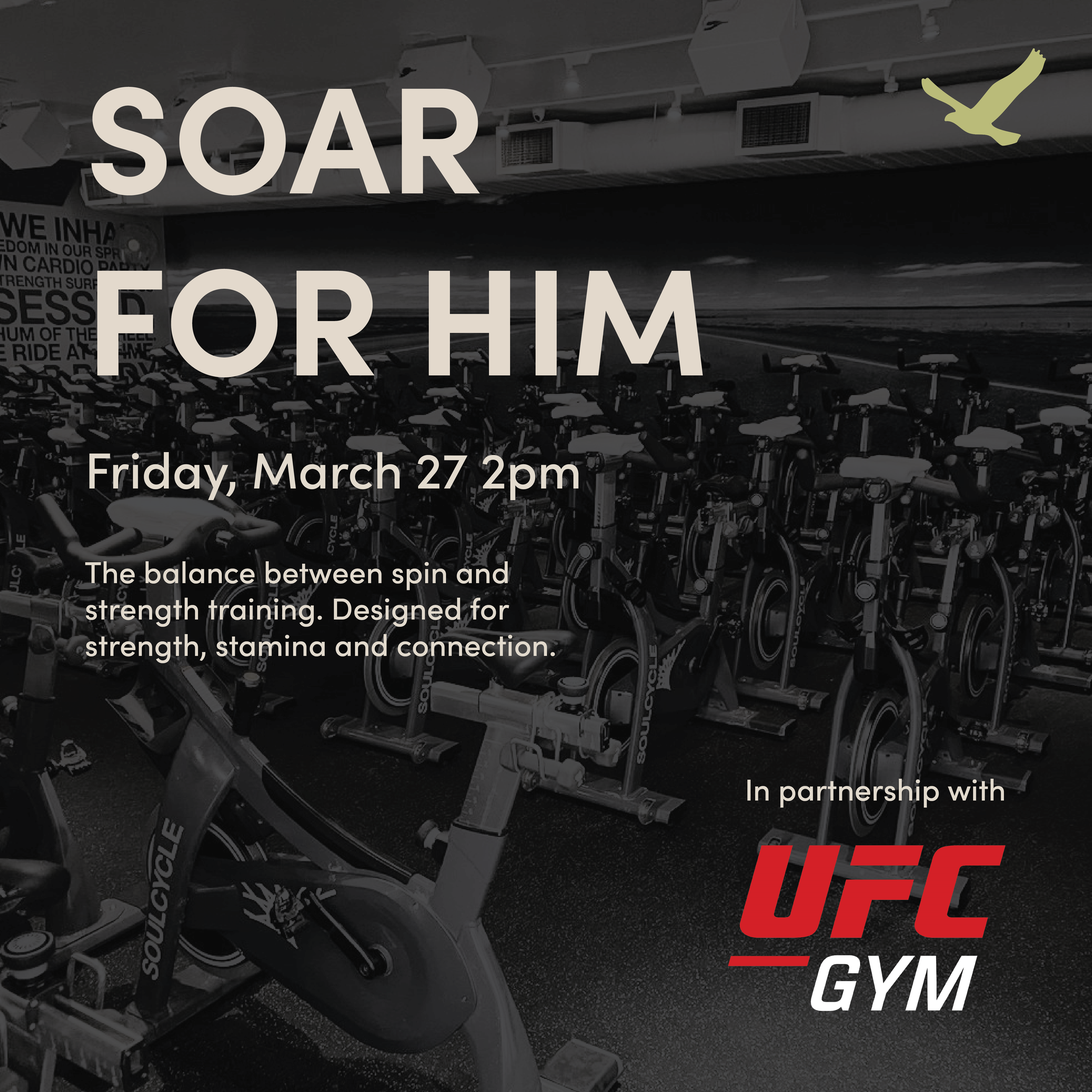 “Soar For Him” breaks the stereotype that spin is just for women — showing men how spin can work for them too! Monthly collaborations with local gyms build bridges between the 2 fitness communities.