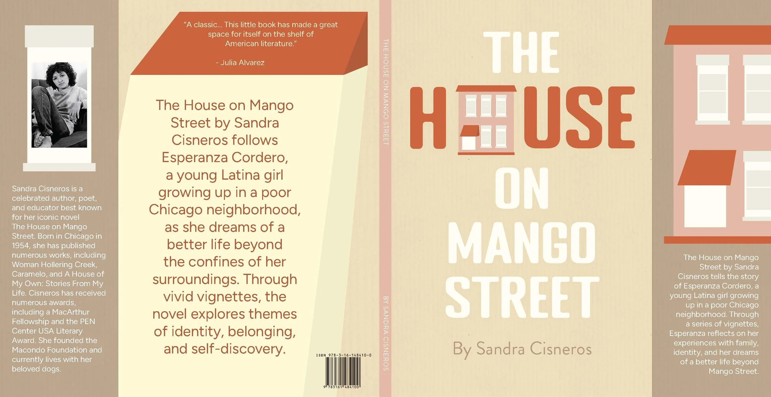 For this book jacket inspired by The House on Mango Street by Sandra Cisneros, my mission was to craft a visually compelling concept that captures the essence of Esperanza’s journey — her search for identity, belonging, and independence within her neighborhood. My primary challenge was to interpret the book’s central themes of cultural heritage, womanhood, and self-discovery through a visual metaphor that felt both authentic and unexpected.